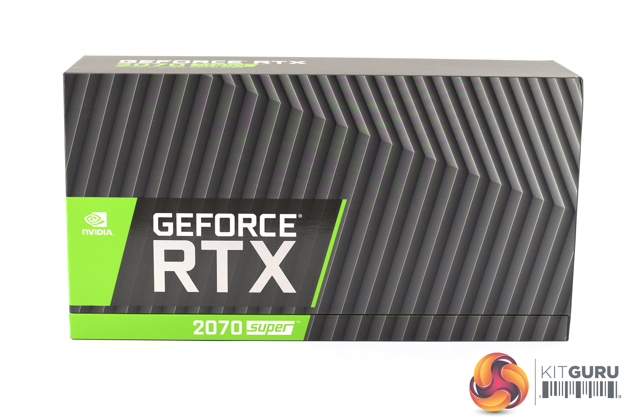 The Nvidia RTX 2070 SUPER Founders Edition ships in the same box we've seen for the other RTX cards, meaning it sports a striped pattern with GeForce branding in the corner.