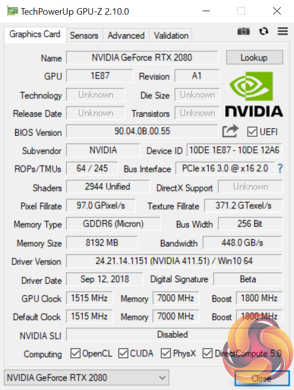 Note: GPU-Z has not yet been updated to show all of the RTX 20 series specs.