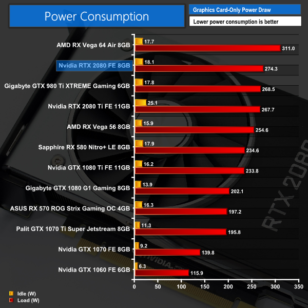 Here, we do see the RTX 2080 drawing less power – but it is again higher than we would have expected. If any readers have ideas to why this might be, please leave them below or over on Facebook – we would love to hear your opinions on this.