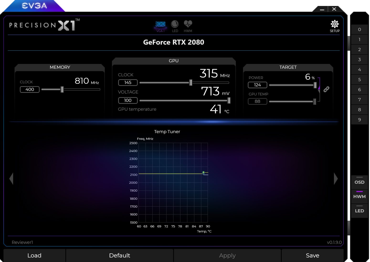 To do this, press were supplied with a new version of EVGA's Precision software, named Precision X1. If you are trying to get the most from your graphics card, the easiest thing to do is set all the inflection points (seen below in graph form) up to the right-hand side – meaning the graphics core will stay uncapped until it hits its maximum temperature.