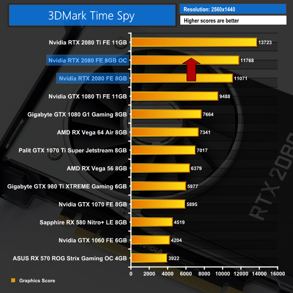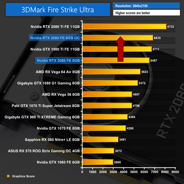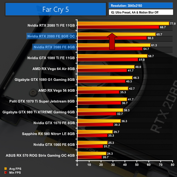 The gains are certainly there with this overclock applied – a 4.4FPS boost playing Far Cry 5 at 4K is not to be sniffed at. The Fire Strike score also rose by 1000 points.