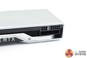 The RTX 2080 Founders Edition requires 1x 6-pin and 1x 8-pin power connectors. Interestingly, the 6-pin connector looks like it is just an 8-pin plug with two of its holes blocked off, which suggests Nvidia is re-using as much of the design from the RTX 2080 Ti as it can.