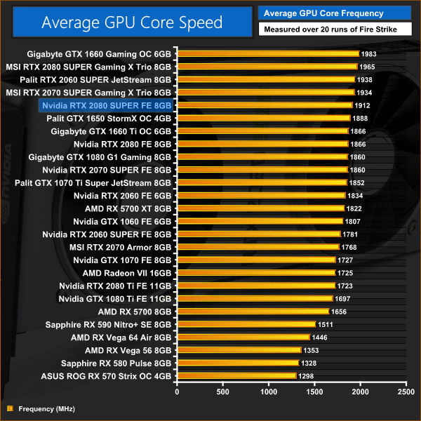 With the card sporting a rated boost clock of 1815MHz, it does quite well to average almost 100MHz higher when looking at real-world clock speeds. This actually makes it the fastest running reference card of this generation – speaking in terms of actual clock frequencies, that is.