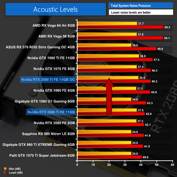 Here, we take a further look at the impact of our overclock, looking at the increased temperatures, acoustics, power draw, and lastly, the effect had on the average clock speed.