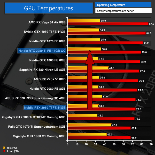 Average GPU frequency didn't quite break past 1900MHz, but we are still seeing a huge real-world frequency increase compared to stock settings. There's definitely big potential for some significant overclocks with the RTX 2080 Ti.