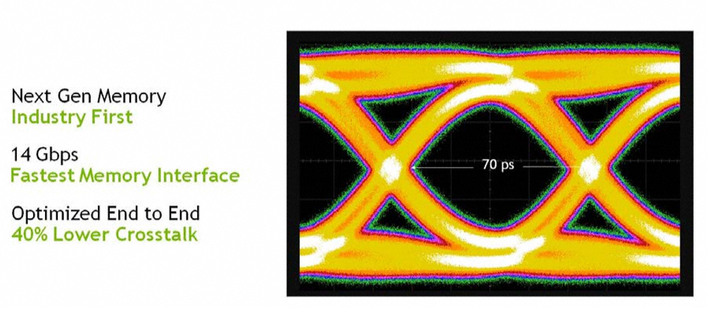 New with Turing is also GDDR6 memory – the first time such VRAM has ever been used with a GPU. With GDDR6, all three Turing GPUs can deliver 14 Gbps signalling rates, despite power efficiency improving 20% over GDDR5X (which was used with GTX 1080 and 1080 Ti). This also required Nvidia to re-work the memory sub-system, resulting in multiple improvements including a claimed 40% reduction in signal crosstalk.