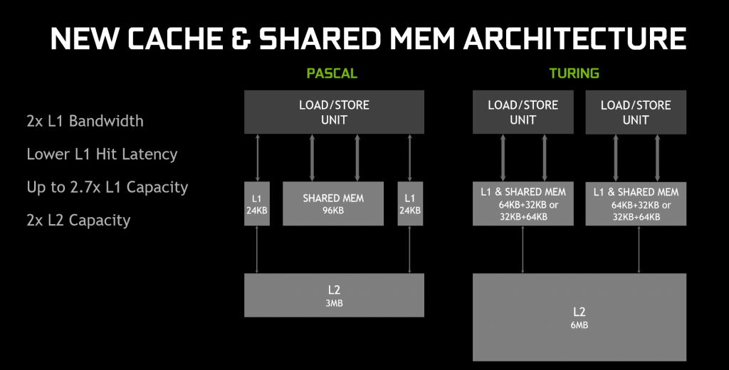 On top of that, Turing has also rejigged the memory architecture. In essence, the memory architecture is now unified, meaning the L1 (level 1) cache can ‘leverage resources', leading to twice the bandwidth per Texture Processing Cluster (TPC) when compared to Pascal. Memory can even be reconfigured when shared memory is not utilising its full capacity – for instance, L1 memory can expand/reduce to 64KB or 32KB respectively, with the former allowing less shared memory per SM, while the latter allows for more shared memory.