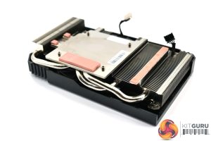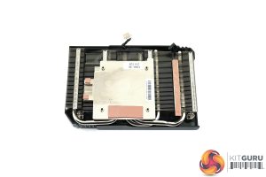 As for the heatsink, this appears identical to the one Palit used for the RTX 3060 StormX OC. That means a single aluminium fin-stack, but with three heatpipes – two more than the Gigabyte Eagle. Both the GPU die and VRAM modules contact with a single baseplate.