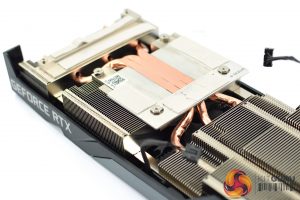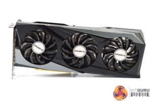 For the cooler, Gigabyte is using its WindForce 3X design, obviously meaning it is a triple-fan configuration, with each fan measuring 80mm. As we have come to expect, the fans utilise Gigabyte’s Alternate Spinning feature, where the central fan spins in reverse relative to the outer two, which should reduce turbulence and increase overall pressure down onto the heatsink itself.