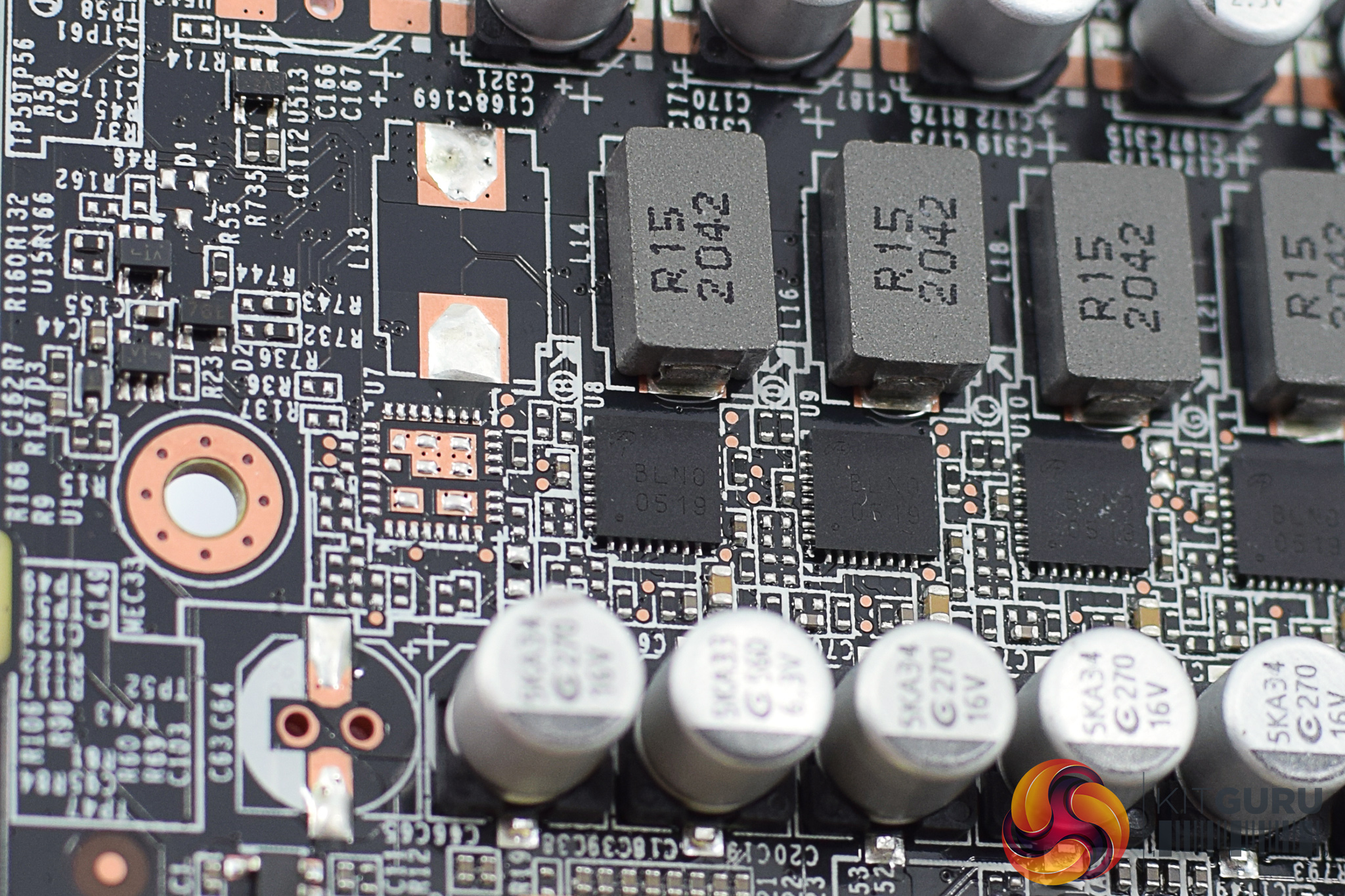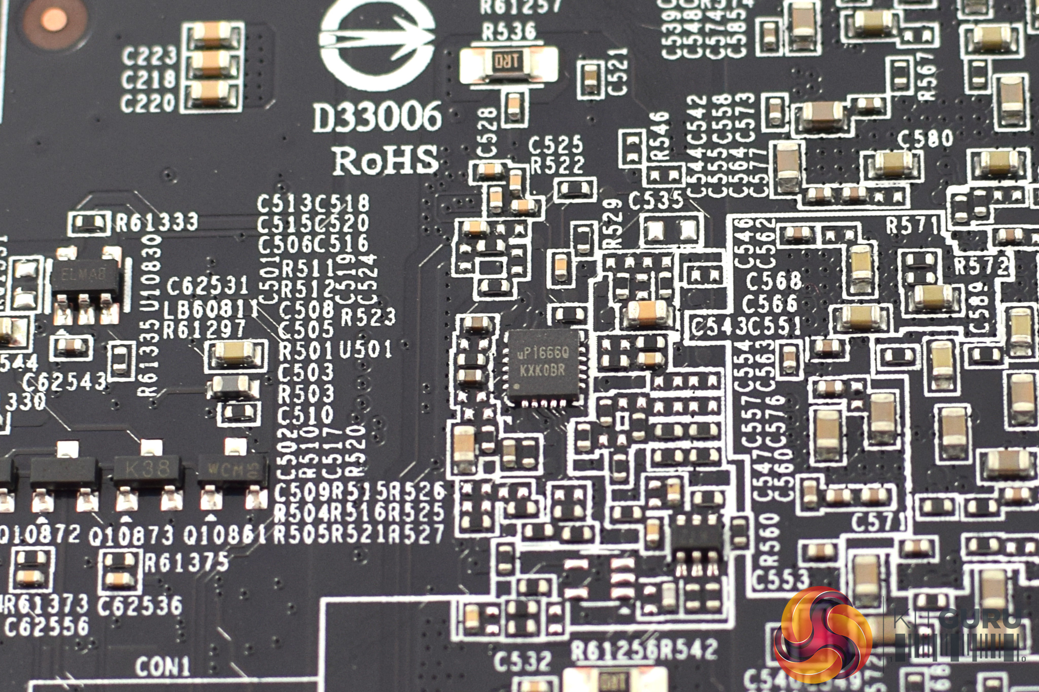 In terms of the PCB, Gigabyte is using a 6 phase VRM for the GPU and 2 phase VRM for the memory. The GPU VRM is controlled by a UPI uP9512R and uses Alpha and Omega AOZ5311NQI MOSFETs. The memory VRM is controlled by a UPI uP1666Q and uses AON6994 asymmetric dual-N-channel MOSFETs.