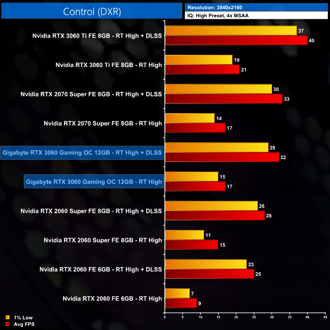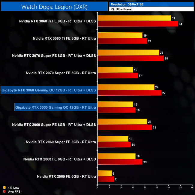 Both Control and Watch Dogs: Legion support DLSS 2.0, so we test both at 4K with and without DLSS (using the Quality mode). We tested Control with RT set to High, and with RT set to Ultra in Watch Dogs: Legion.