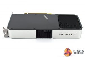 The front side of the card is mostly just bare metal, but we can see the GeForce RTX branding towards the end of the card.