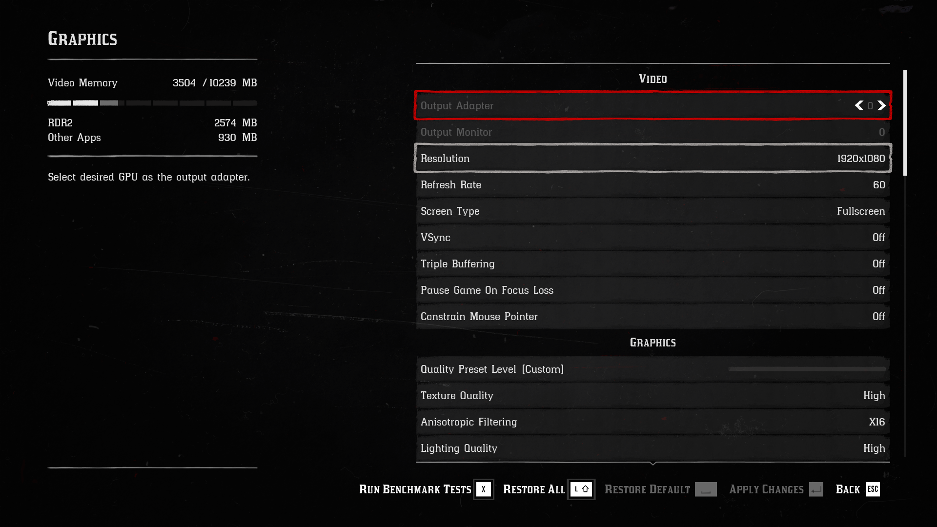 Engine: Rockstar Advance Game Engine (RAGE). We test by manually selecting High settings, not using a preset, including TAA, Vulkan API.