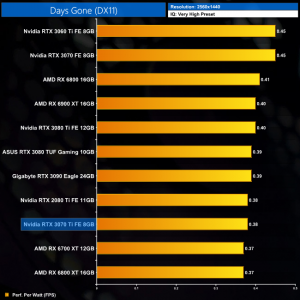 Using the graphics card-only power draw figures presented earlier in the review, here we present performance per Watt on a per-game basis for all twelve games we tested at 1440p.