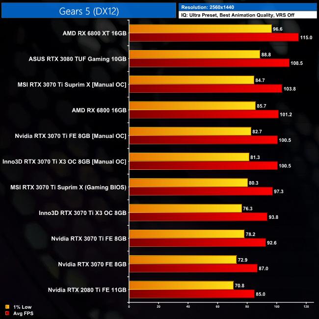 In practice, all of our GPUs saw performance increase by 5-7% depending on the game played. The MSI was slightly faster to begin with, and so proved still slightly faster when overclocked, but overall performance scaling from these three GPUs proved very similar.
