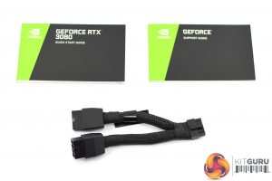 Underneath the graphics card itself, a small box contains all the included accessories, consisting of a couple of guides and that 2x 8-pin to 12-pin power adapter we looked at in our unboxing.