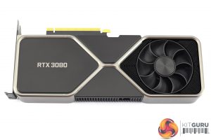 Speaking of the back of the card, this features the RTX 3080 branding printed towards the I/O bracket, with the fan taking up the right-hand side. It's all very tastefully done, with nothing looking out of place. Even the screws are hidden under small tabs, giving the card a very polished look.
