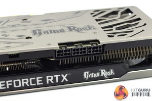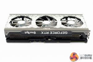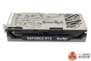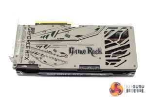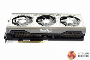 As for the backplate, this is quite a striking design, with the GameRock logo positioned in the middle. It’s a hefty slab of metal, with a few cut-outs toward the end to allow airflow through the heatsink.