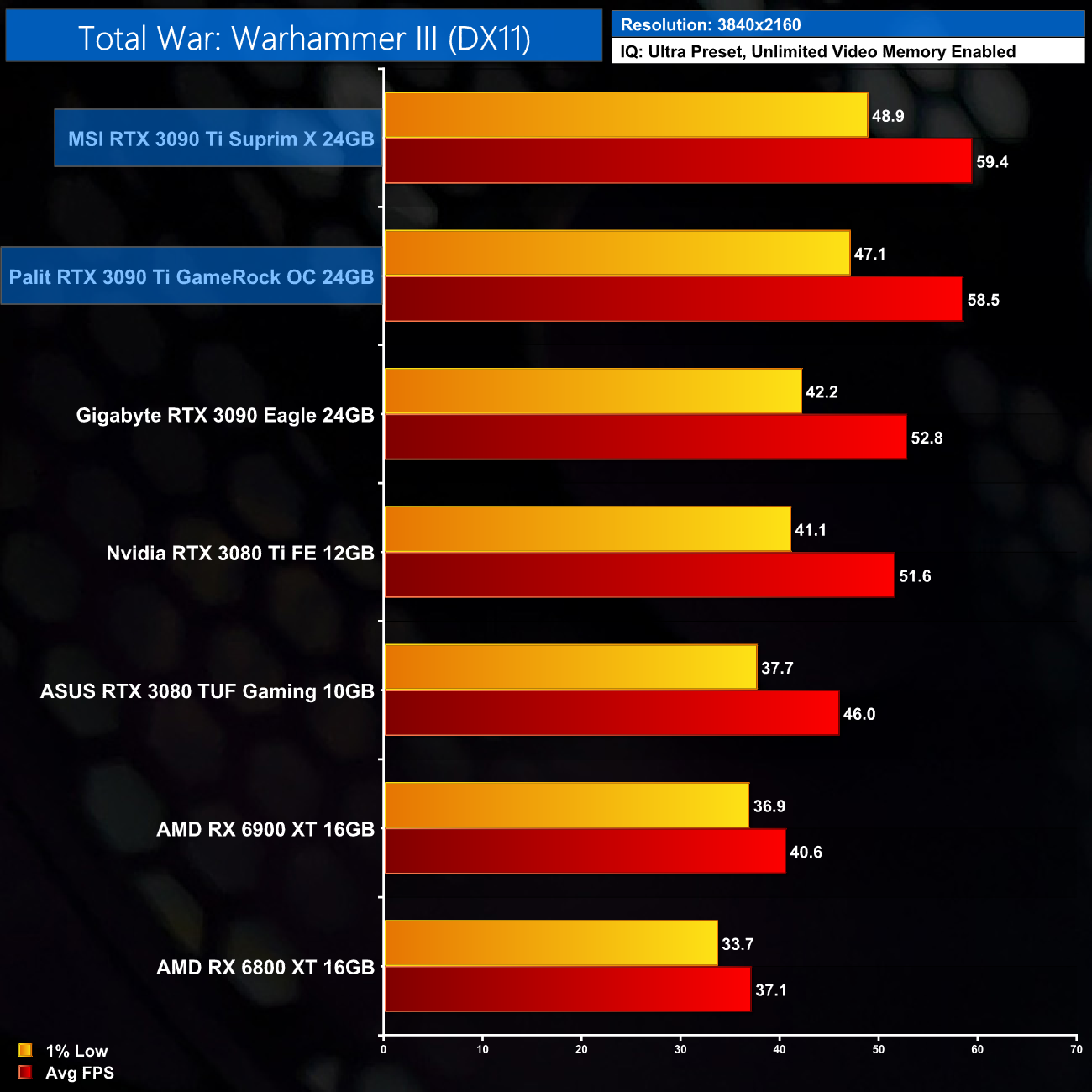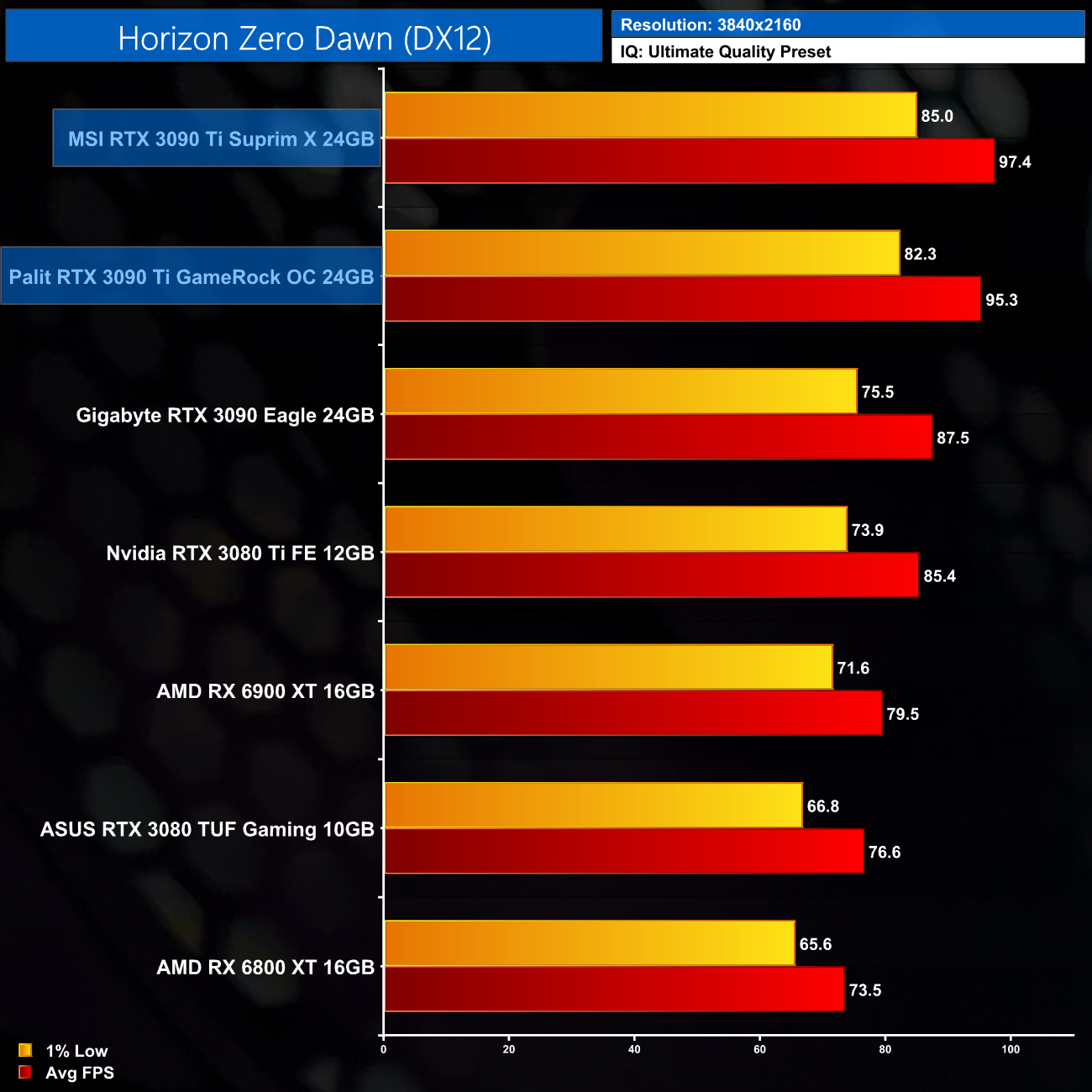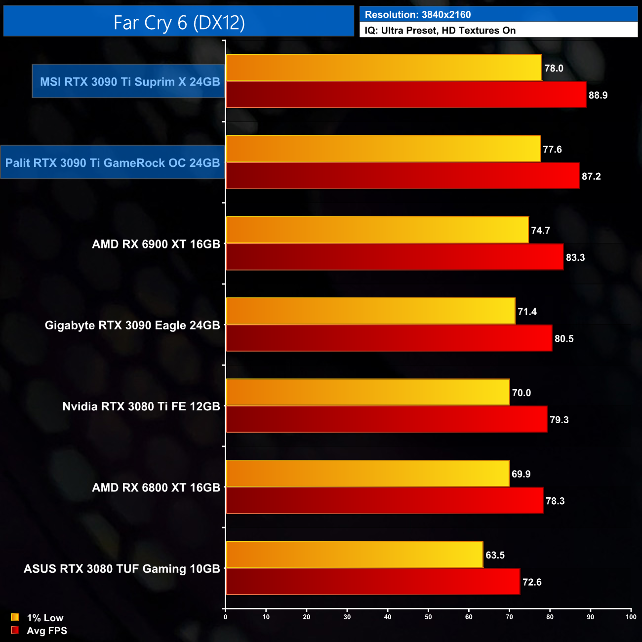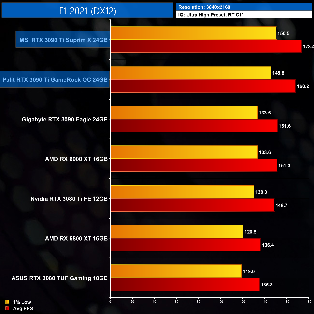 While our primary focus so far has been on the gaming performance of the MSI Suprim X, here we include a select sample 4K gaming benchmarks, testing both the Suprim X and GameRock OC.