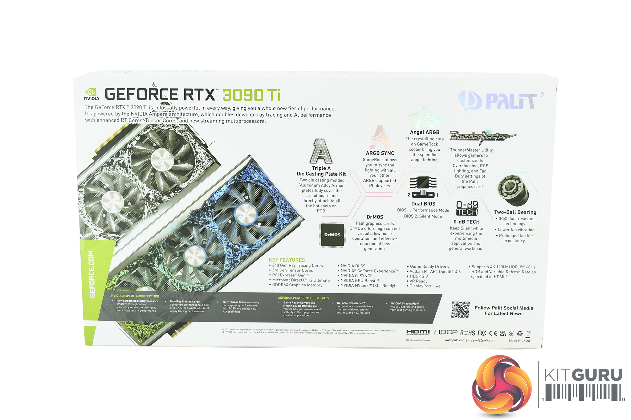 As for the Palit RTX 3090 Ti GameRock OC, this also ships in a white box, with the GameRock logo emblazoned on the front – I always get a blast of nostalgia for Guitar Hero whenever I see this font…