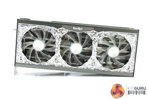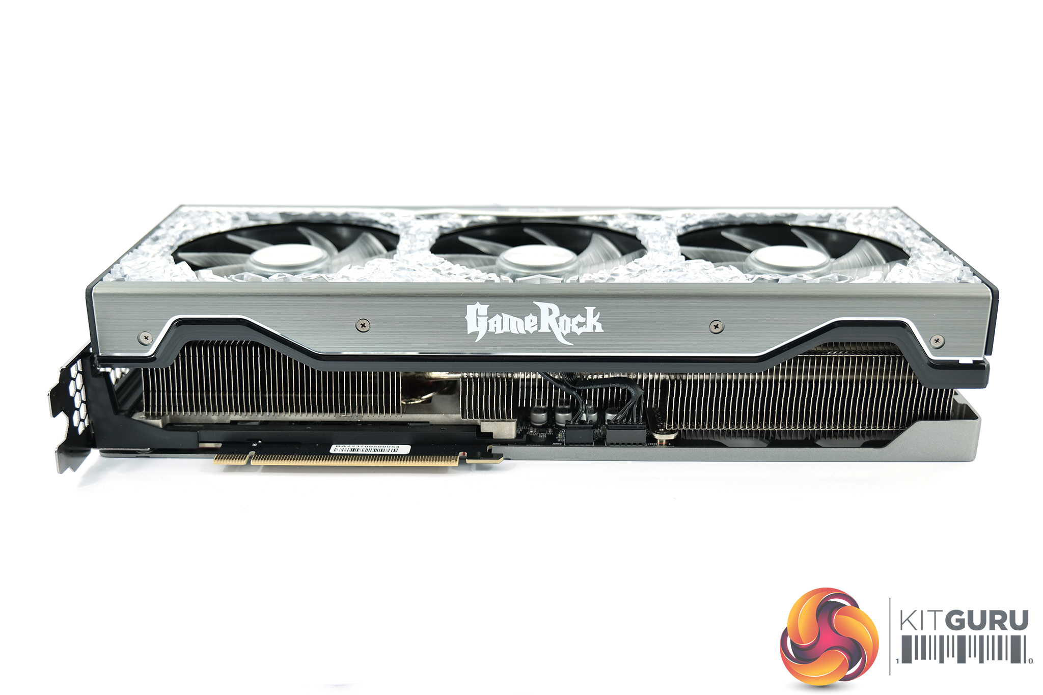 Palit has also upscaled its design however to deal with the extra heat of the GPU – the GameRock OC measures 314 x 137 x 65 mm, and weighs in just under 1.9KG on my scales. It's not quite as large as the Suprim X, but it's not exactly Mini-ITX friendly…