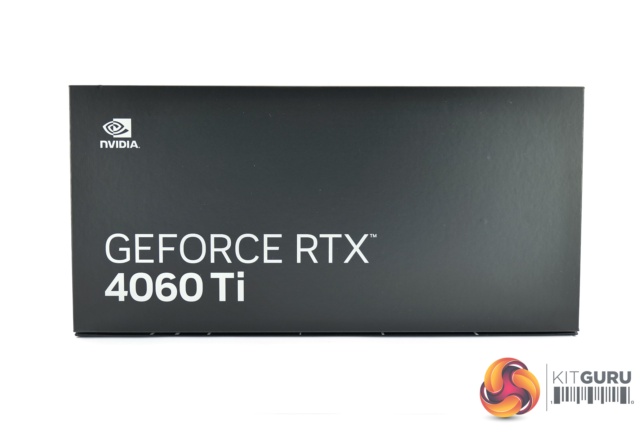 The Nvidia RTX 4060 Ti ships in the same box as the rest of the 40-series Founders Edition models. The box opens up to reveal the card sitting in the middle of the cardboard surround.