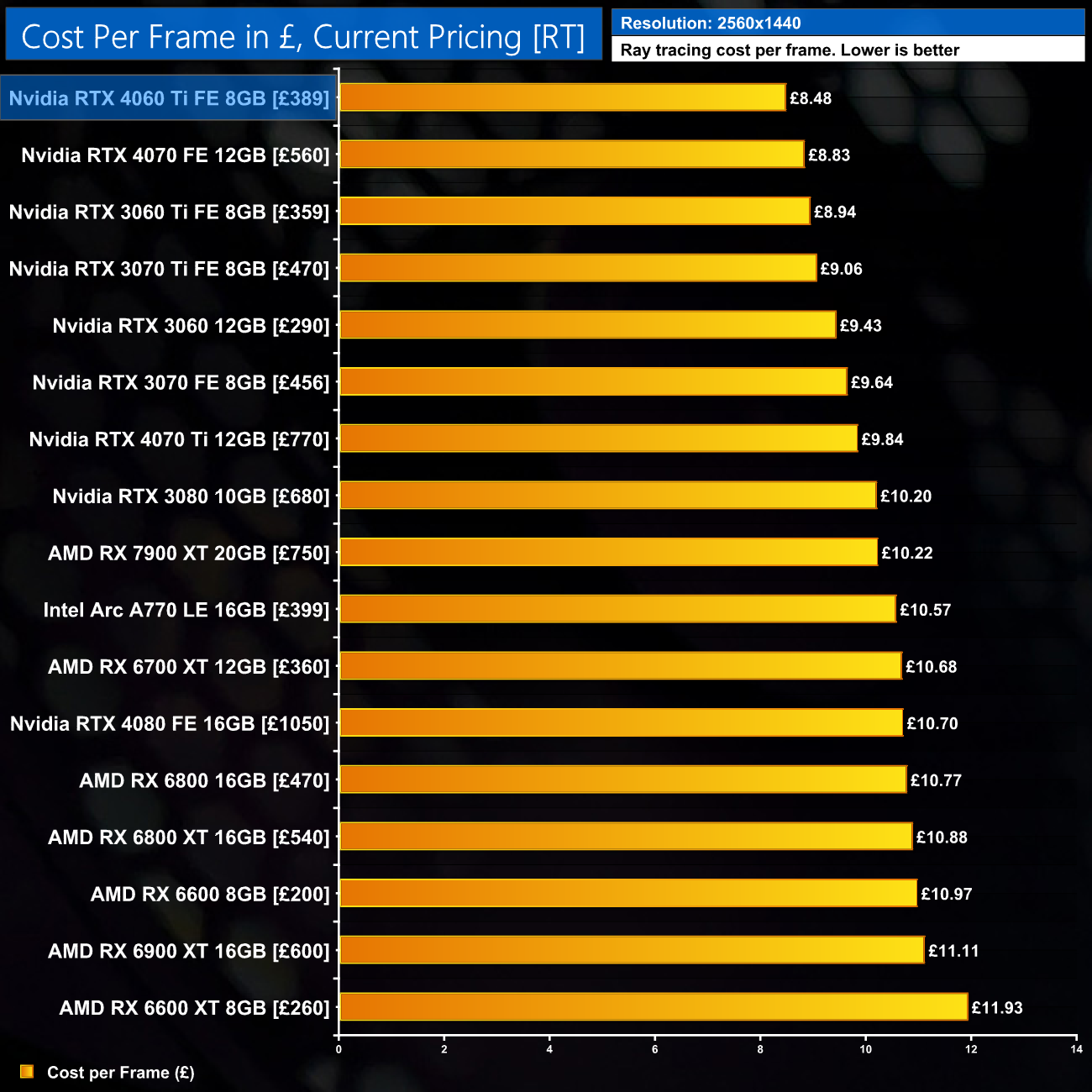 At 1440p things do get slightly better, with the 4060 Ti now offering 8% better value, but it's still hardly a game changer.