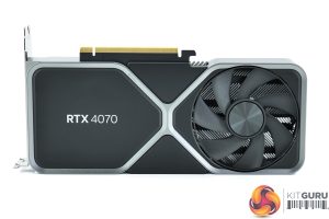 The backplate retains the same x-shaped design we are now very familiar with, with the RTX 4070 branding visible on the left-hand side. The top-side 90mm fan takes up almost the entirety of the right-hand side.