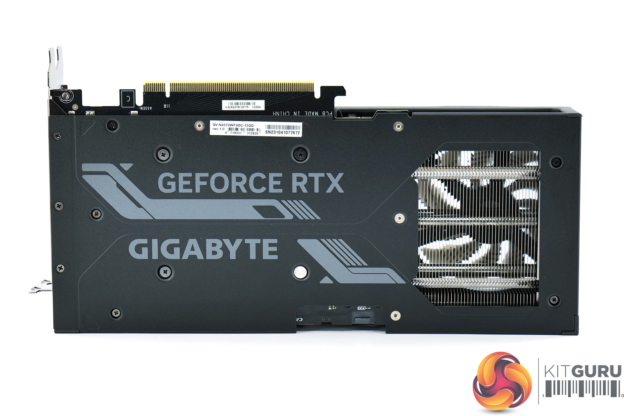 The backplate retains the same x-shaped design we are now very familiar with, with the RTX 4070 branding visible on the left-hand side. The top-side 90mm fan takes up almost the entirety of the right-hand side.