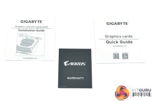 Inside we find a few pieces of documentation, alongside a new dual 8-pin power adapter for the 12VHPWR connector. An anti-sag GPU support bracket is also included which screws into a couple of your motherboard stand offs, before attaching to the end of the card to keep it level.