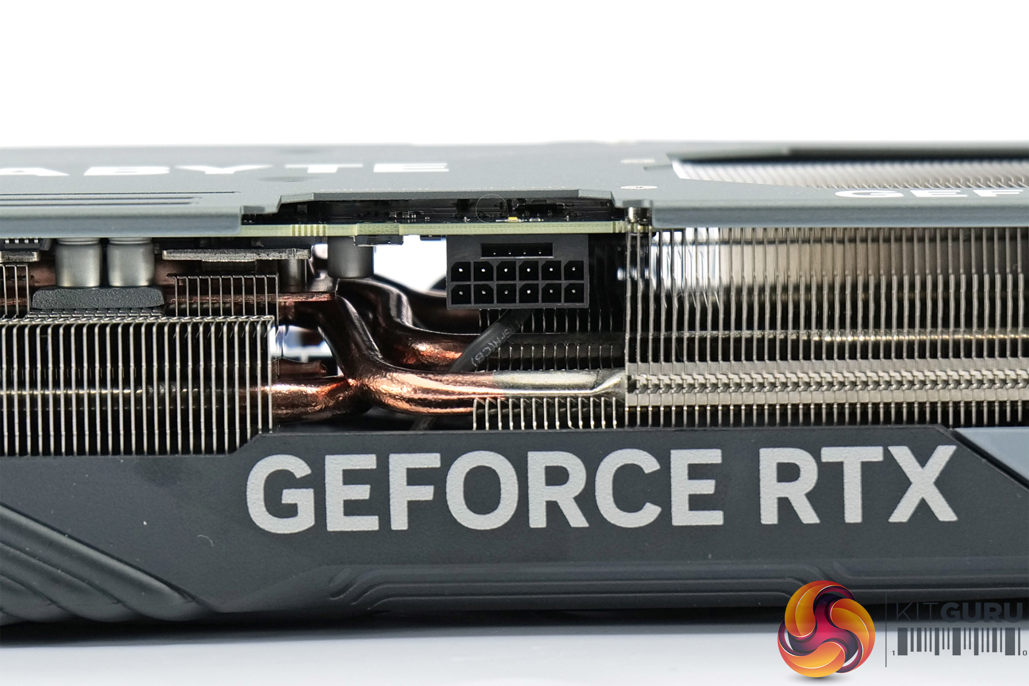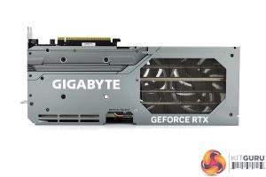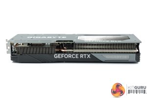 The front side of the card is home to the GeForce RTX branding, as well as the Gigabyte logo, one of the RGB zones on the card.