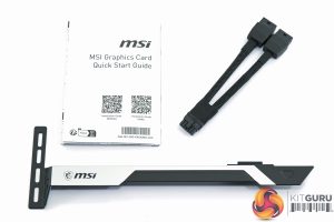 Inside, MSI provides a quick start guide as well as an anti-sag bracket, always a welcome extra for big modern day cards. A dual 8-pin to 12VHPWR adapter is also included.