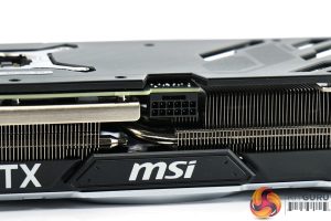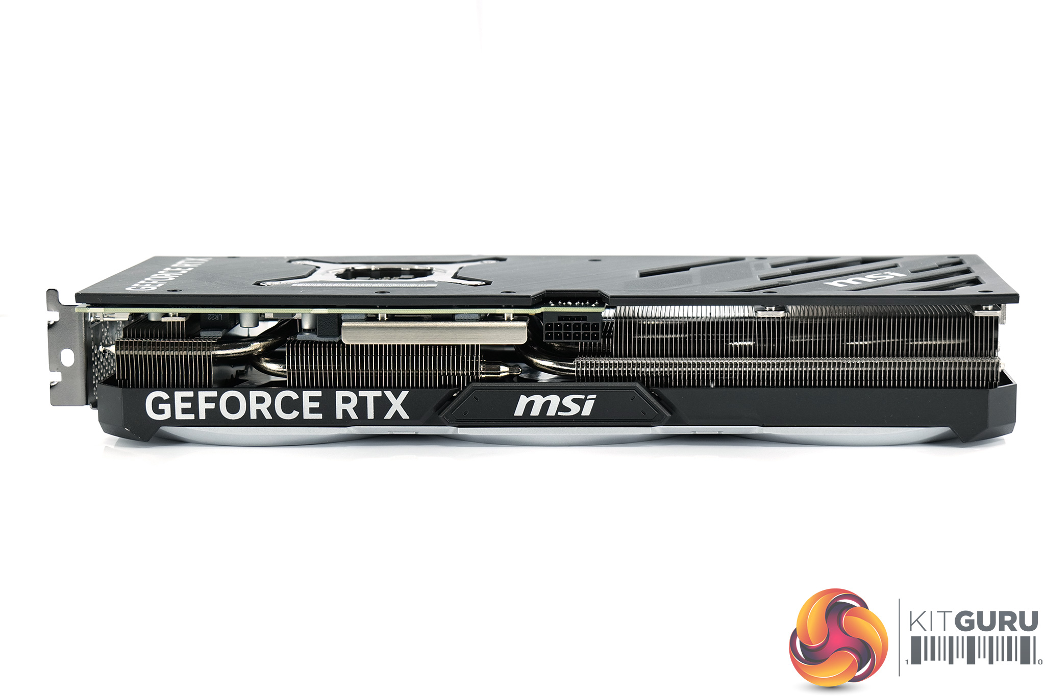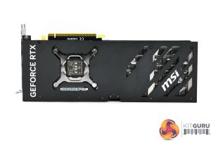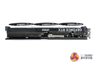 The front side of the card is home to the GeForce RTX and MSI logos printed in white, do note that there are no RGB LEDs anywhere on this card so nothing lights up once the system is powered on.