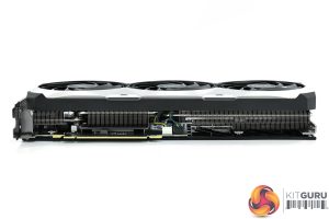 As for the backplate, rather disappointingly this is made from plastic which belies the fact this is a graphics card priced at over £750 – I'd certainly expect a metal backplate here. It does offer a few cut-outs towards the end of the card to allow air to pass though the heatsink.