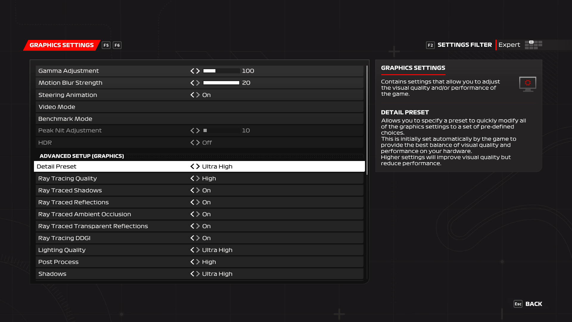 Engine: EGO. We test using the Ultra High preset, High ray tracing quality, DXR API. DLSS/FSR are disabled.