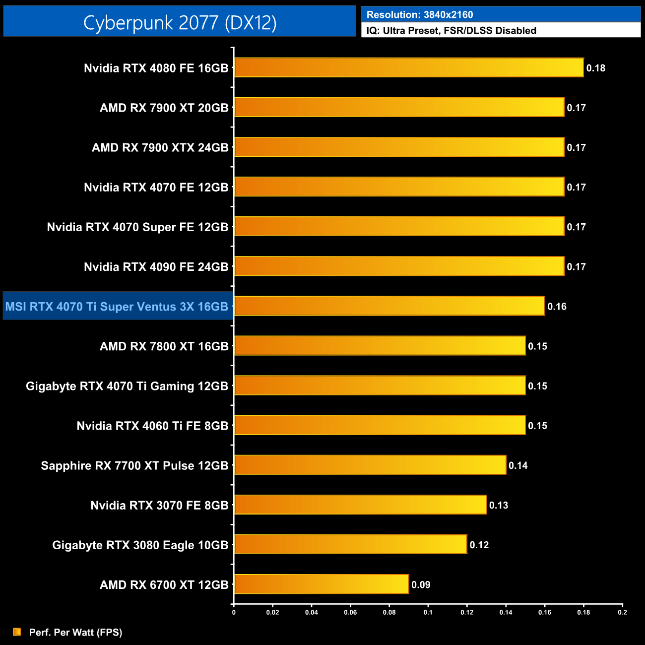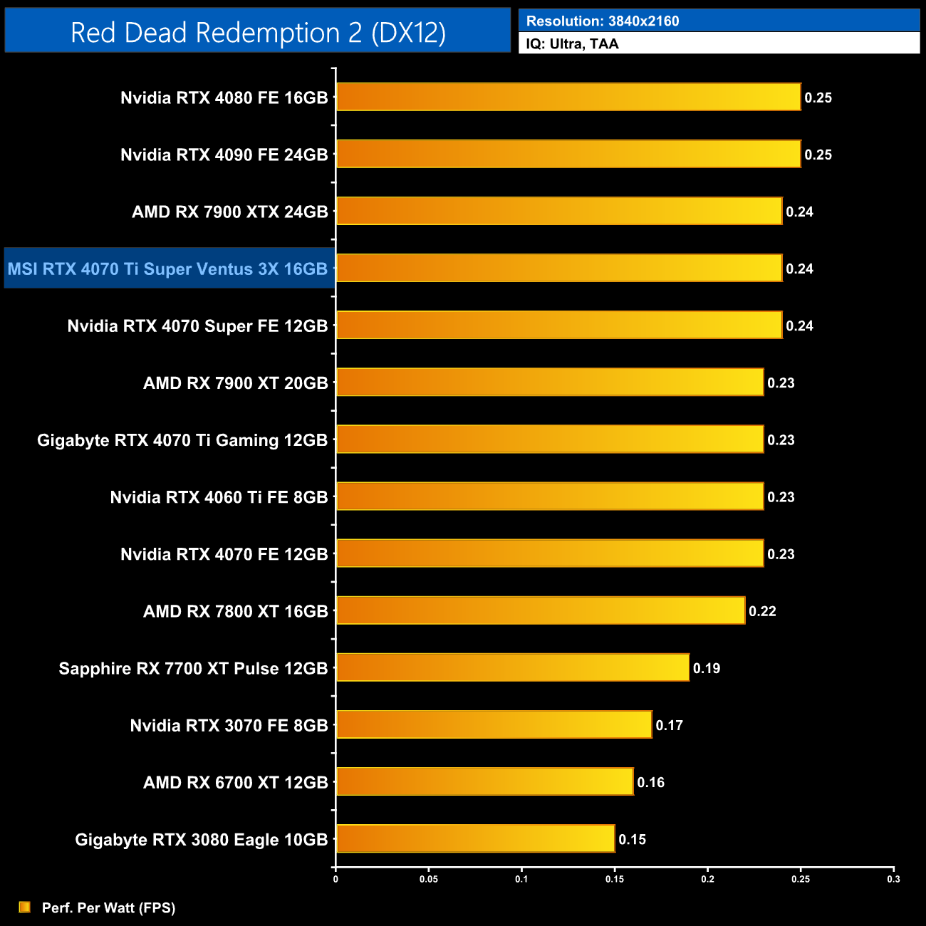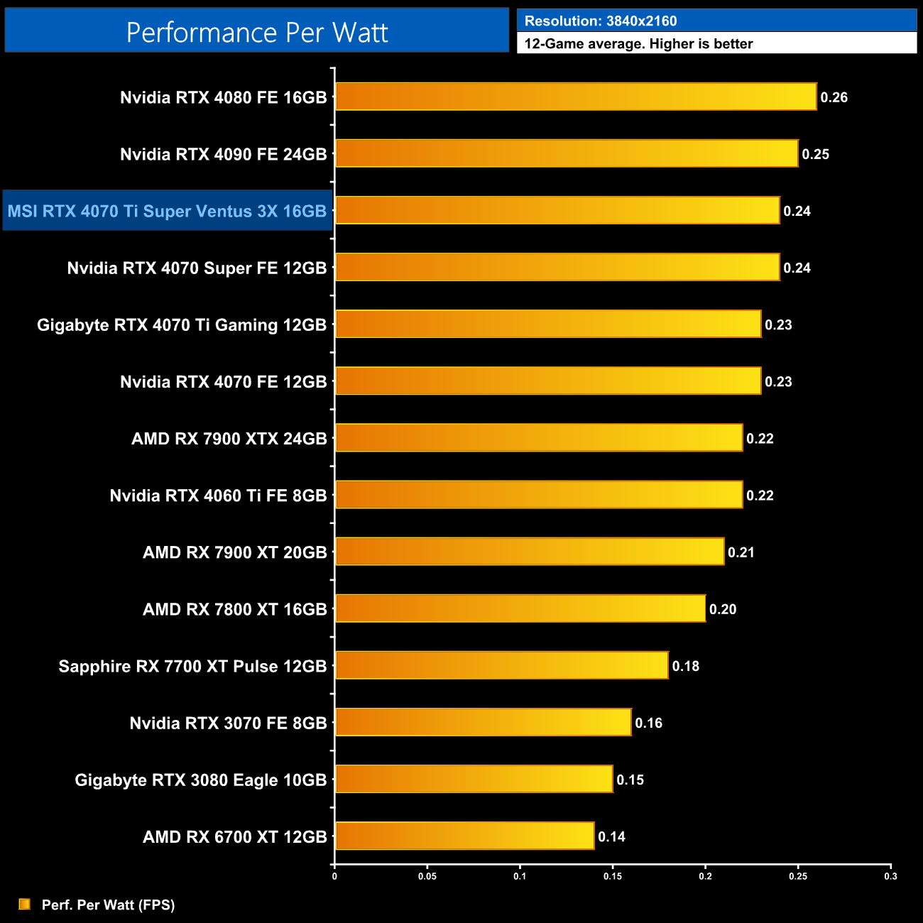 Lastly, the results follow a very similar trend at 4K, with the 4070 Ti Super on par with the RTX 4070 Super and just a hair behind the 4090 and 4080.