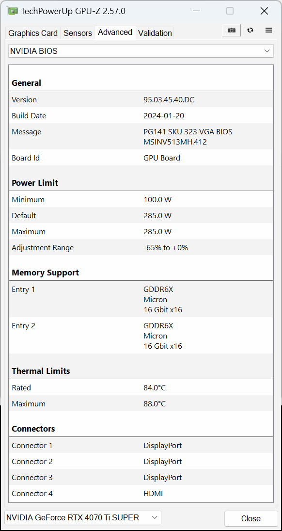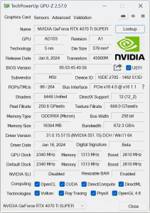 We have just re-visited the RTX 4070 Ti Super using the latest BIOS, which MSI has made publicly available HERE. We published a separate article investigating the latest BIOS compared to the original one, and you can find all the details HERE. In short, even the latest BIOS does not affect the results in any meaningful way, and we saw just a 1% difference on average compared to our original figures in this review.