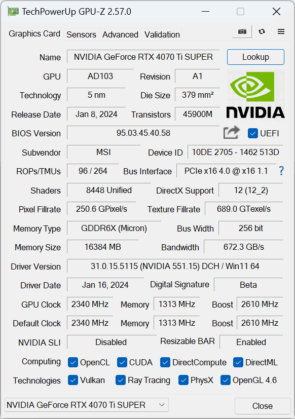 - RTX 4070 Ti Super was benchmarked with the 551.15 driver supplied to press.