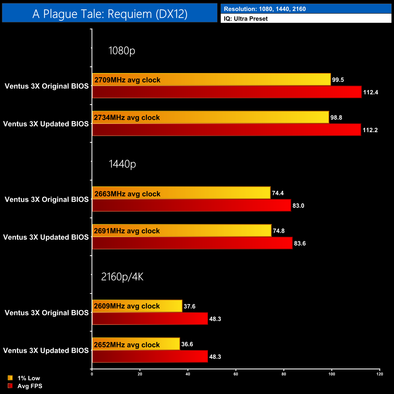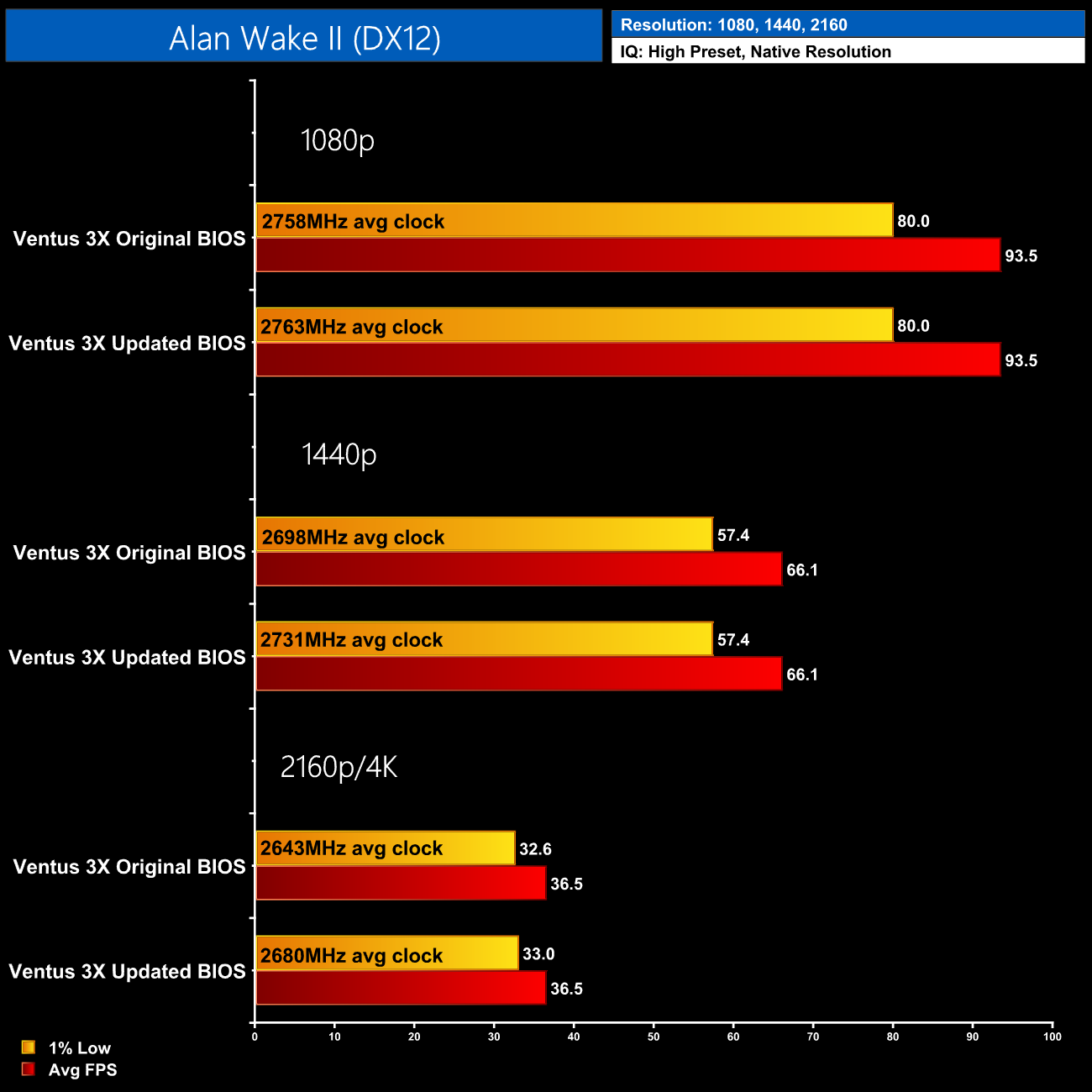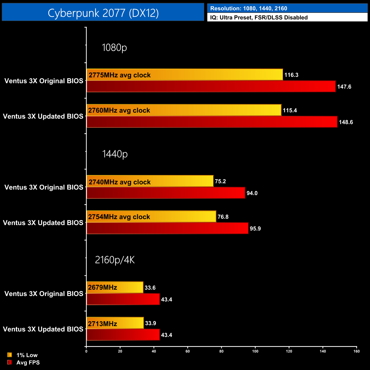 It's a strange situation to be in, as Nvidia would not confirm what the issue was, while MSI was only using very vague language about what changes were actually made. All data shown in this review was tested using the Ventus 3X's original BIOS and that's what we have based our conclusions on. If we get more updates we will be sure to update this review (see update at top of page), but we can only judge a graphics card based on the numbers we see.