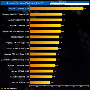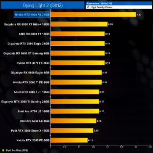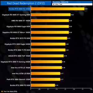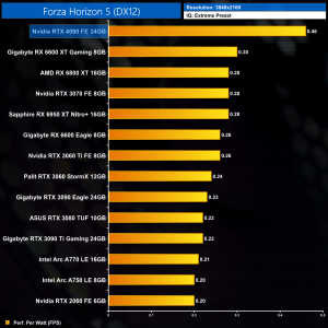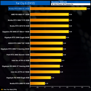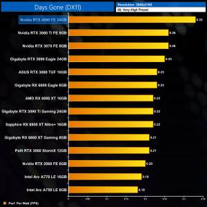 Moving onto performance per Watt, even at 1080p where the RTX 4090 scales relatively poorly, it is still a new efficiency leader, offering 32% better performance per Watt over the RX 6600 XT. It's light years ahead of the RTX 3090 Ti, too, with almost double the efficiency.