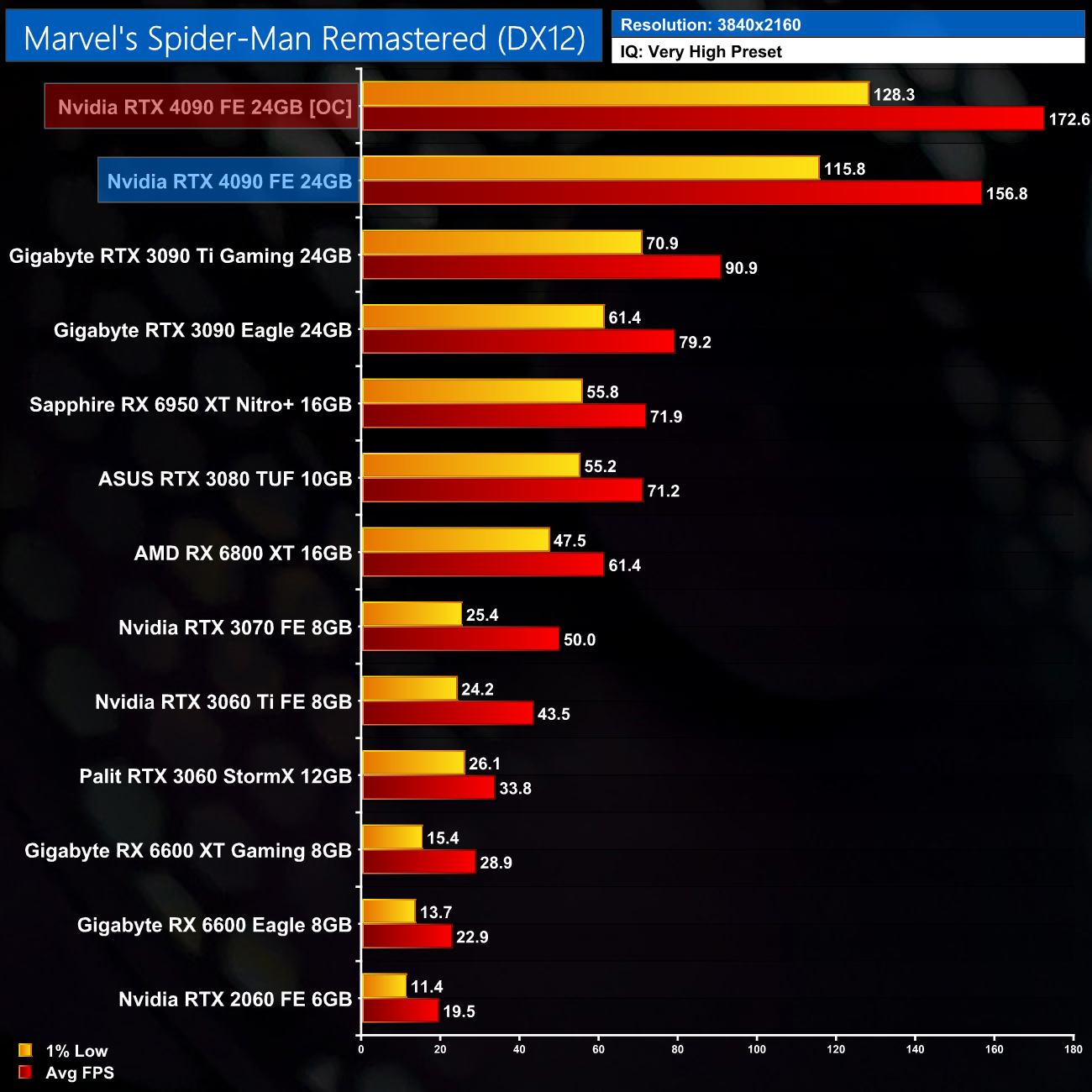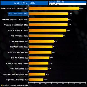 And at 4K, the 4090 is well clear of the RTX 3090 Ti, this time with a 67% advantage, as it is pushing almost 200FPS with the game fully maxed out.