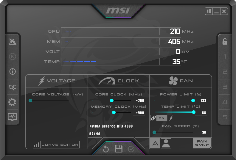 For our manual overclocking tests, we used MSI Afterburner. Our best results are as below.