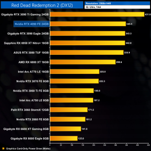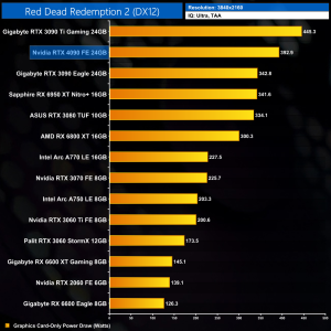 As for Red Dead Redemption 2, I honestly never thought I'd see such high frame rates in this game, but the RTX 4090 hits just shy of 180FPS at 1440p, coming in 52% faster than the RTX 3090 Ti.