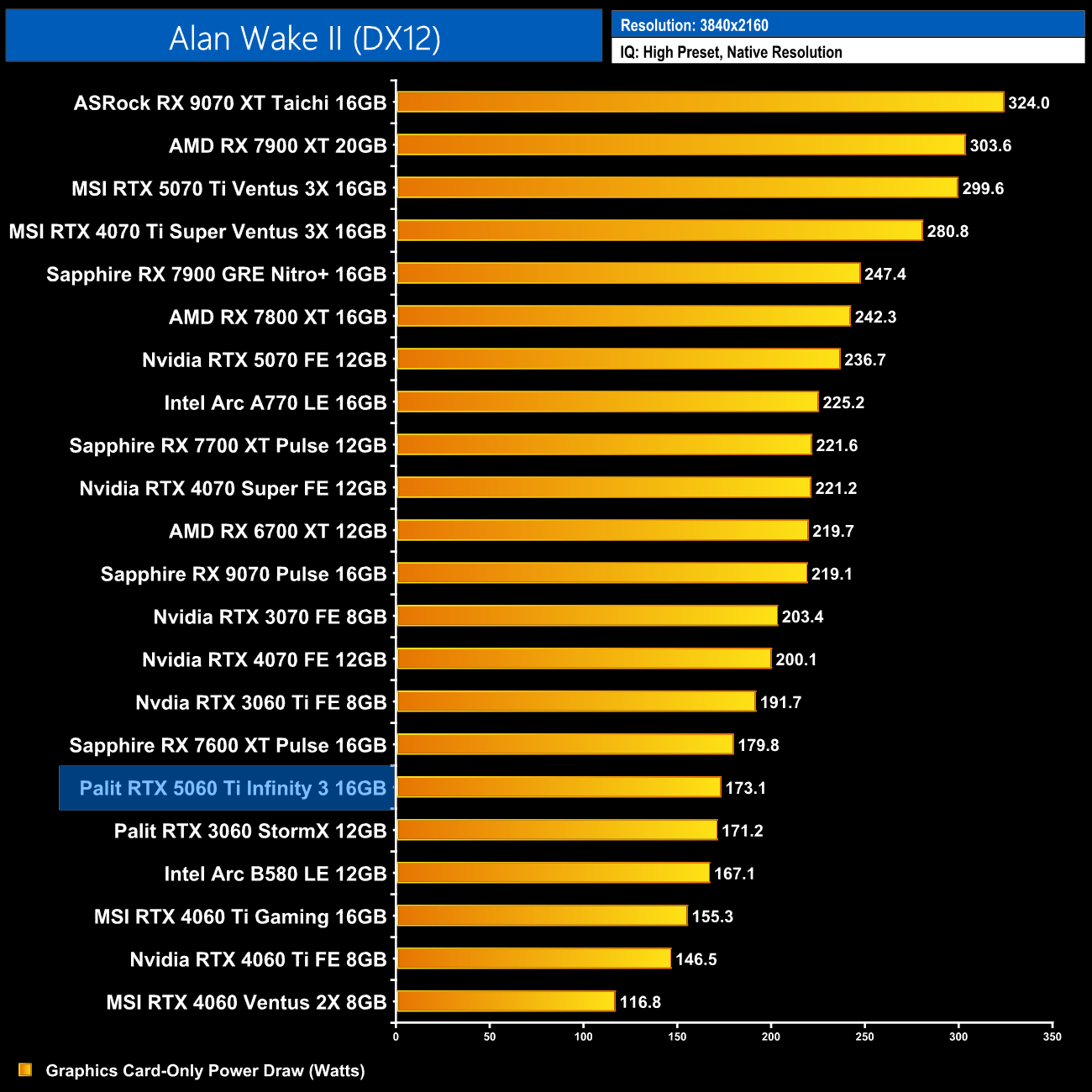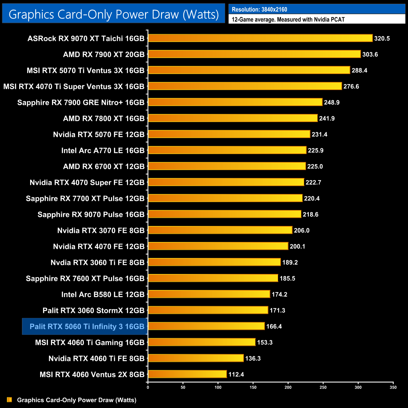 Here we present power draw figures for the graphics card-only, on a per-game basis for all twelve games we tested at 2160p (4K). This is measured using Nvidia's Power Capture Analysis Tool, also known as PCAT. You can read more about our updated power draw testing methodology HERE.