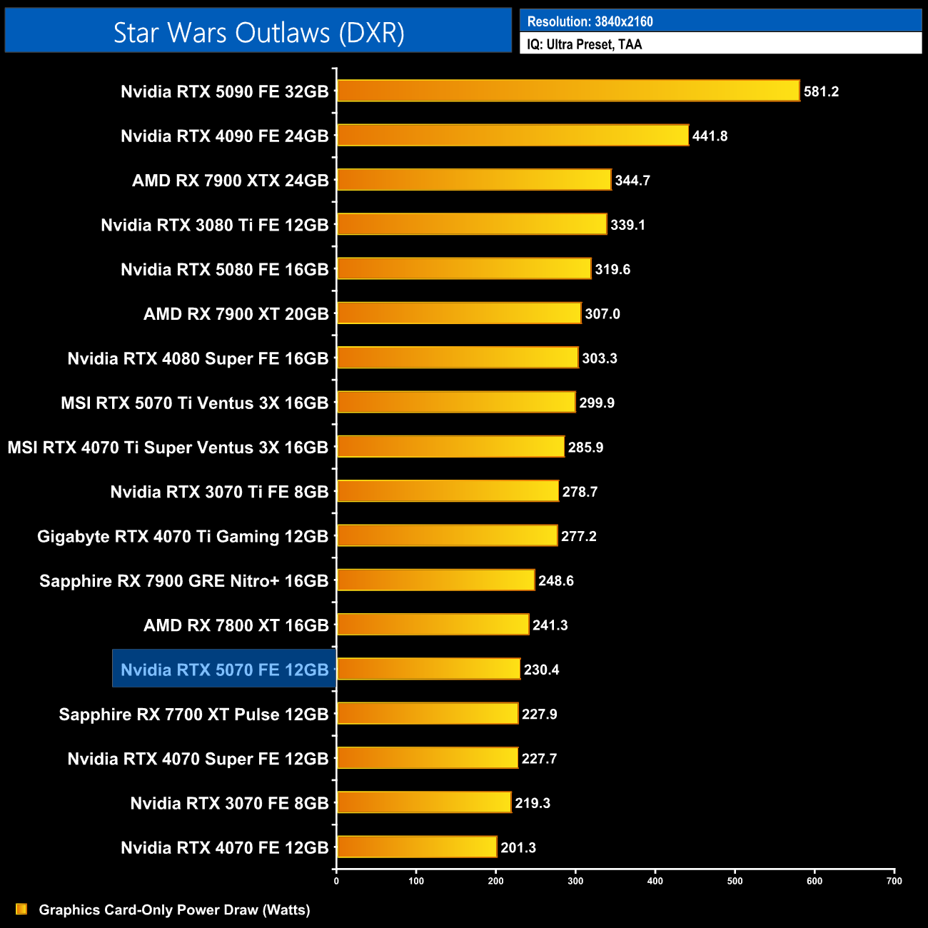Up at 4K, we can see power now matching the RTX 4070 Super, but it's still barely exceeding 220W – well below the 250W TGP. A couple of games get closer to that figure, as you can see at the top of the page, including Cyberpunk 2077 and A Plague Tale: Requiem, but there's also a few that don't even hit 200W.