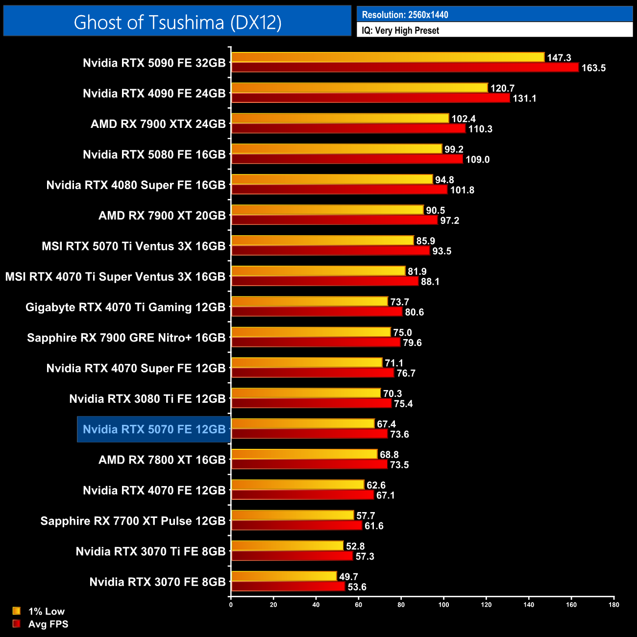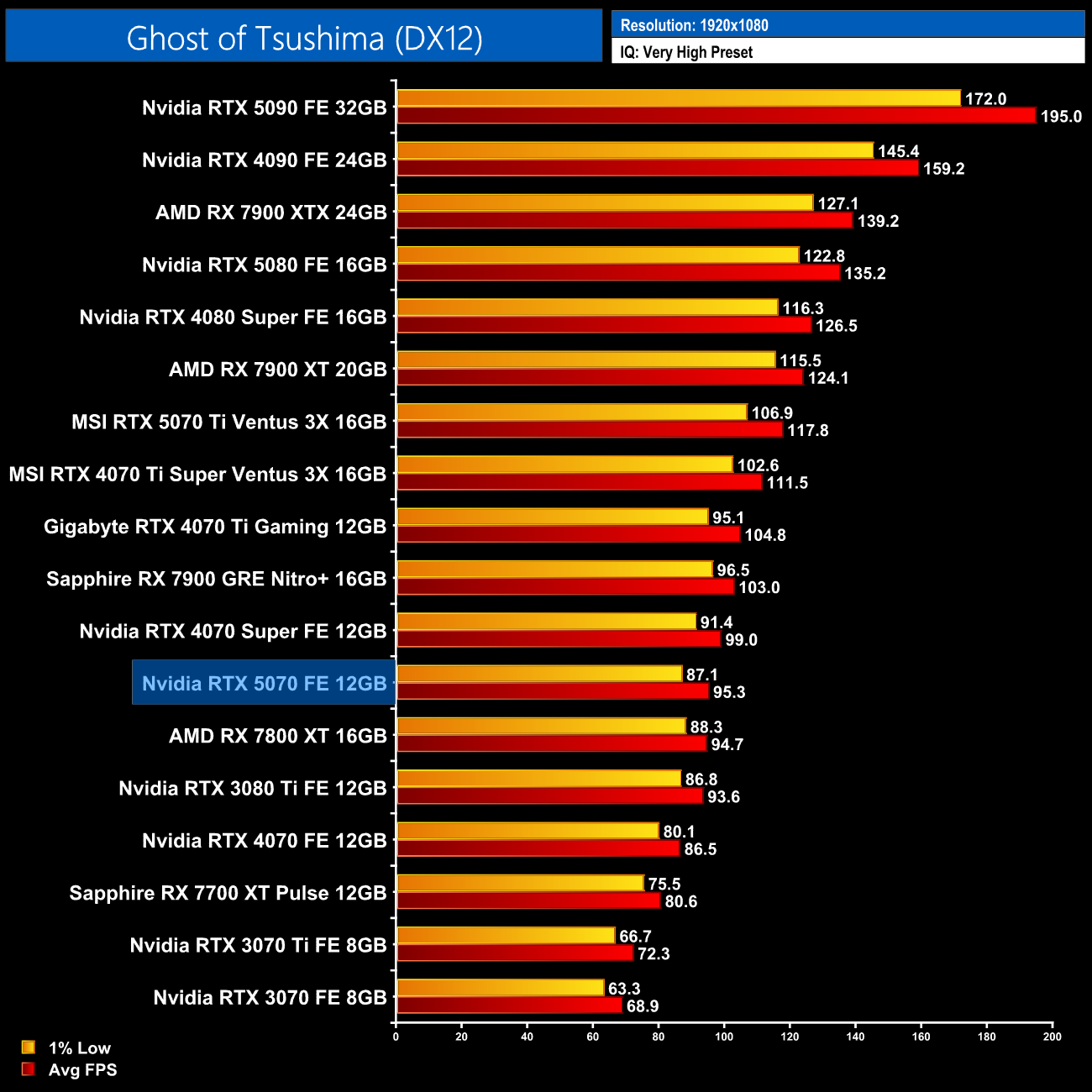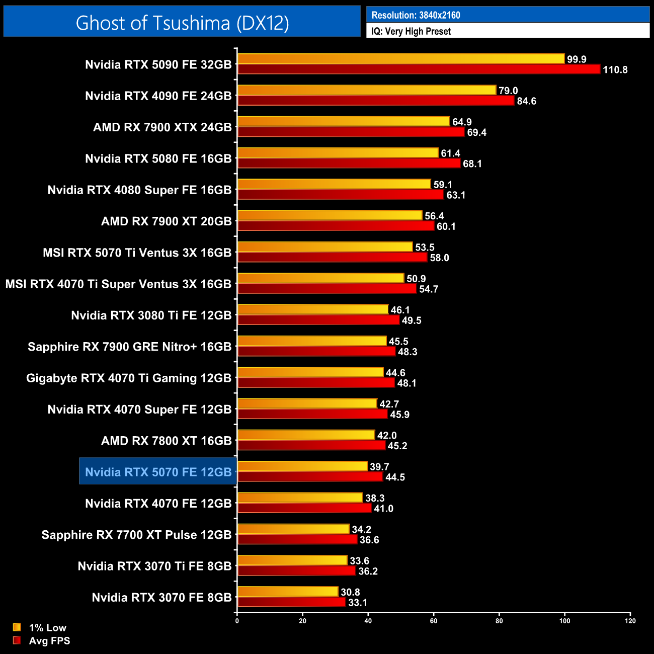Ghost of Tsushima is more disappointing, given the 5070 slips to being 4% slower than the 4070 Super, while it's just 10% faster than the vanilla 4070.