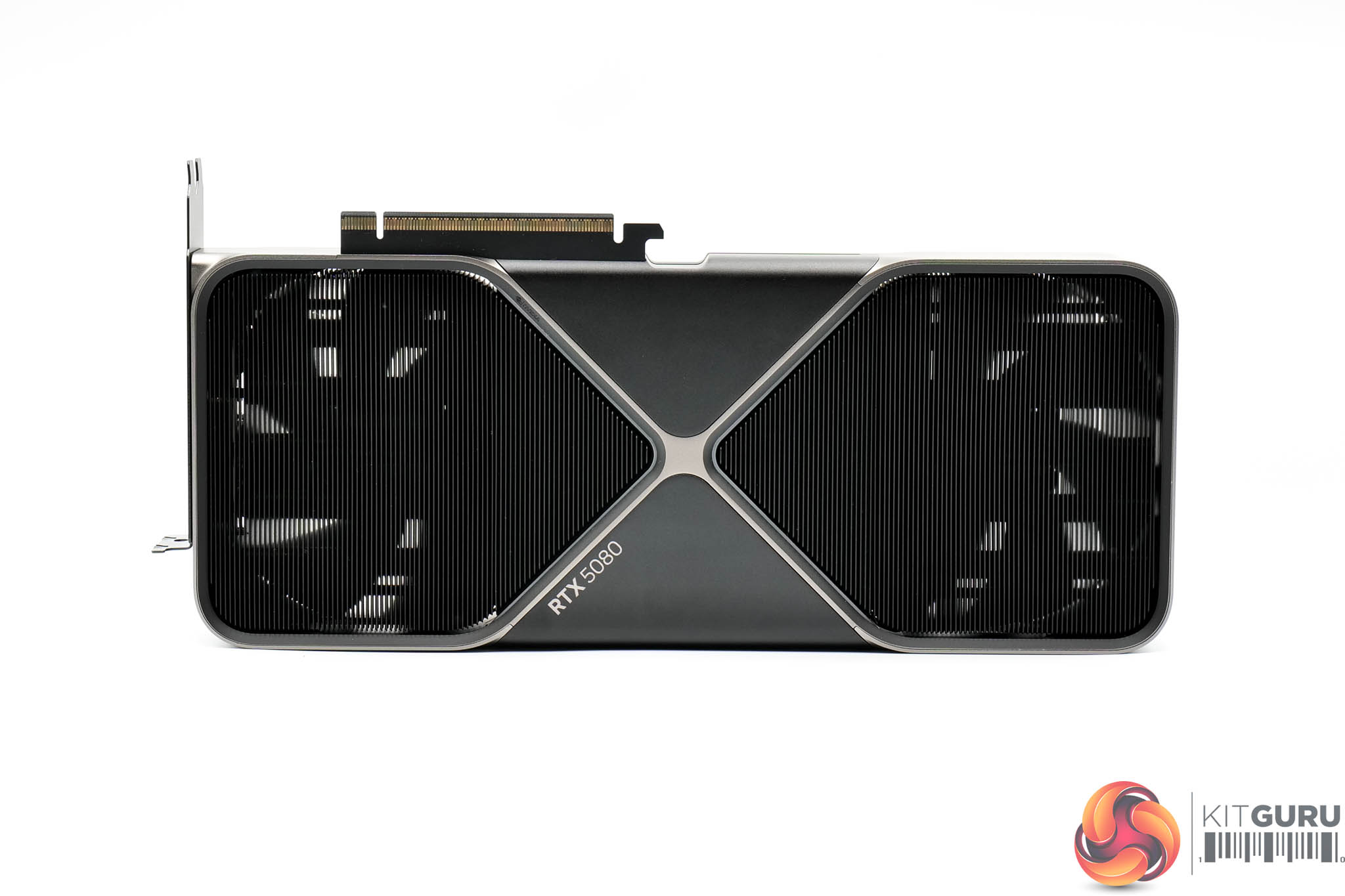 Visually, the RTX 5080 Founders Edition is identical to the RTX 5090. It sports the same industrial design language, with the two large fans part of what Nvidia calls the ‘double flow through' cooler, given the PCB has been moved to the dead centre of the card itself to allow maximum airflow to pass through the heatsink.