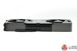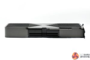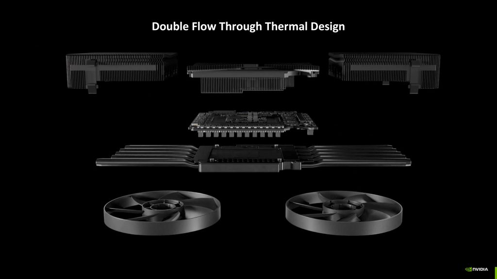 The fans are obviously now both positioned on the front side of the card, rather than one on the top and one on the bottom. Nvidia calls this the ‘double flow through' design, as the PCB has been moved to the dead centre of the card itself to allow maximum airflow to pass through the heatsink.