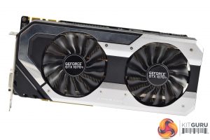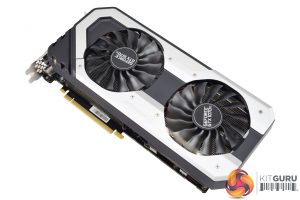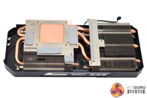 As for the cooling solution, the Super JetStream utilises two 100mm fans which blow directly onto a dense fin array. As mentioned previously, this is a 2.5-slot card, so it just has that extra bit of space to accommodate a larger heatsink.