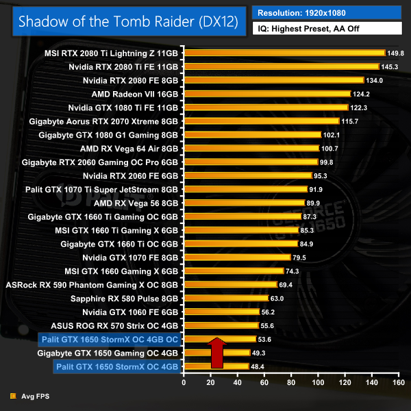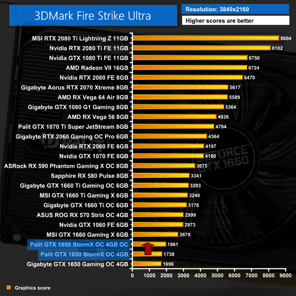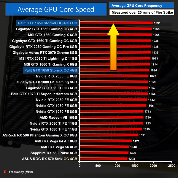 This overclock saw our average frequency increase to 1991MHz, enough to overtake the Gigabyte GTX 1650's out of the box clock speed.